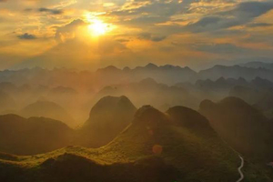靘(音qìng )雾山处于喀斯特峰丛的核心区域,海拔830米,因常年云雾缭绕,故得名。