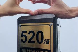 12:20 徒步520个台阶,抵达山顶观景台;游览云冰山网红打卡点壹脚跨两省网,山顶观景台,民宿区烟雾缭绕,云冰铁索桥,云冰风车山等景点;