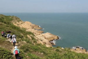 13:00 吃饱喝足,继续出发登山,一路近看奇石乱布,远观无边大海;