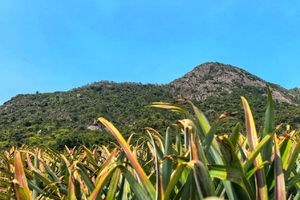 丫髻山周边的菠萝果园,由一垄一垄约半米高的菠萝树组成,类似于梯田,从山腰层层叠叠直到山脚,高低错落看起来很壮观。