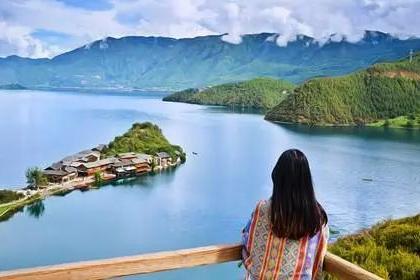 欣赏风景如画的泸沽湖全景,面朝湖泊神山,眼前的一切让人误以为自己走进了油画世界。