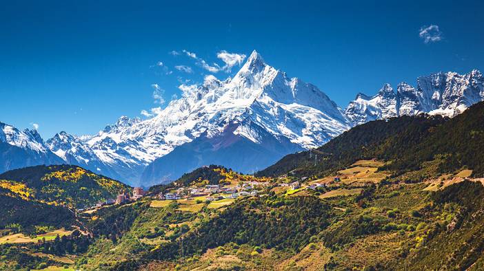 早餐后出发前往松赞林寺景区我们乘坐景区环保车到达拉姆央措湖,徒步转湖后进入松赞林寺参观游览。其建筑建于公元 1679 年, 噶丹•松赞林寺也称“云南第一寺”是云南省规模最大的藏传佛教寺院,在整个藏区都有着举足轻重的地位。因其外观布局酷似布达拉宫,所以又有“小布达拉宫”之称。 随后我们沿214国道途经尼西后和奔子栏镇,我们中餐可以在尼西或奔子栏镇享用。午餐后沿滇藏线214国道进入梅里雪山国家公园的金沙江月亮湾,金沙江遭遇了一座浑圆的金字塔型山峰,金色的江水于是绕着山峰流出了一个标准的“倒Ω”形,这就是很多摄影作品中的金沙江大拐弯;游览完月亮湾后进入白茫雪山腹地,穿越隧道经德钦县城约傍晚抵达飞来寺入住酒店。