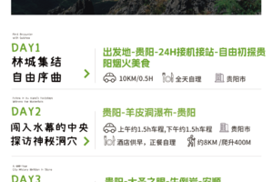 自由游玩推荐:黔灵山公园(看猴子老虎、人文古迹、寺庙祈福)、甲秀楼(地标性建筑物)、民族博物馆、省博、省地质博物馆等。