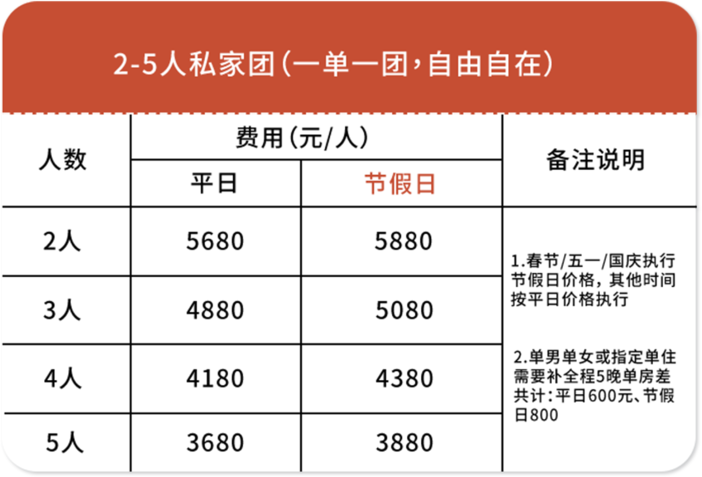 【用车说明】根据参团人数安排车型,保证一人一座。
