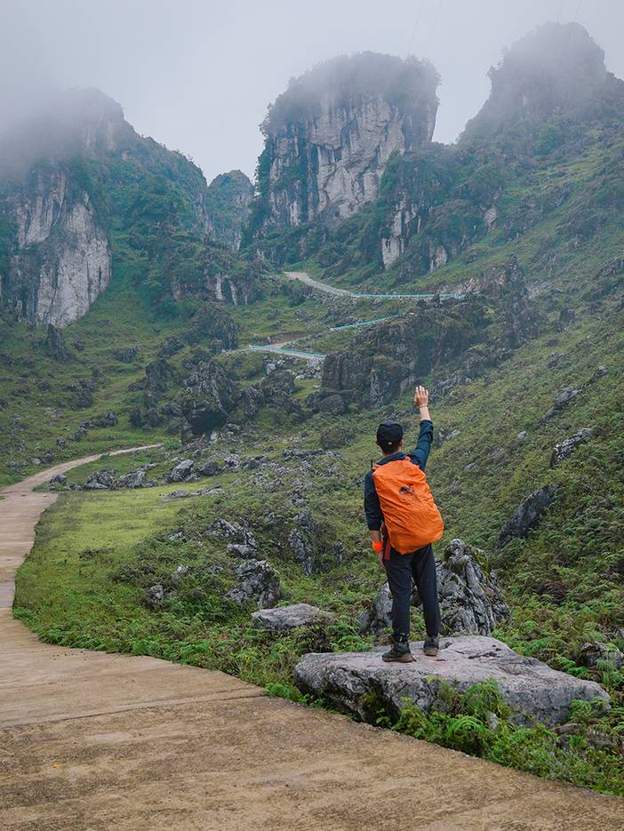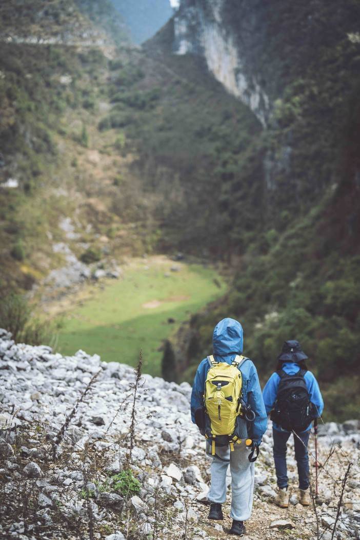 ①今天的徒步路程约10公里,海拔爬升为800米(下降约500米),以喀斯特地形地貌为主,需要走一段乡道和爬坡以及穿越蕨类灌木丛、山脊石林等。