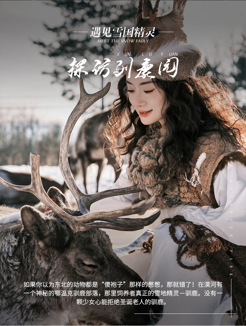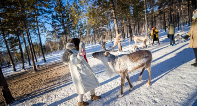 √ 车程+游览10:00-11:00,中国北方游牧民族历史文化的活化石【驯鹿园】,在这里可以与驯鹿亲密接触,快将新鲜的苔藓分发给童话精灵吧。