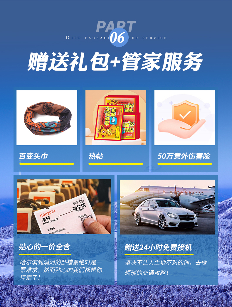 【预订声明】:此产品为拼接路线,分别为哈亚雪和漠河路线,各路线非同一车辆与领队,敬请谅解!
