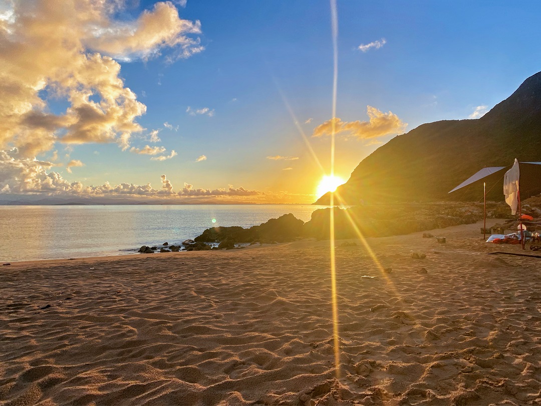 位于三门岛上东边月亮湾沙滩,每天早晨都能迎来绝美日出,早上天微亮,露营的小伙伴们能够拉开帐帘,就能欣赏着份美景。