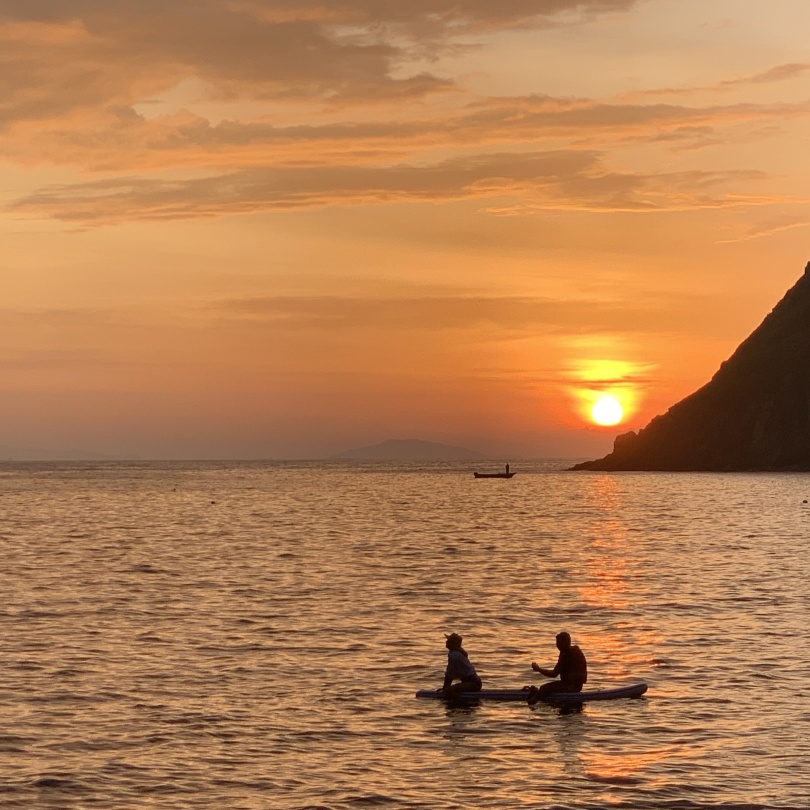 09:00 继续在岛上玩桨板,浮潜,昨天没有玩尽兴的亲们可以岛上嗨起来,大家在海上用桨板摆造型,早上的海水更清澈,如果玩浮潜,能看到清澈海底世界。