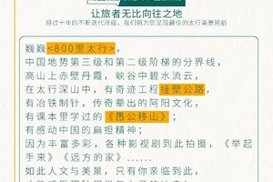 1、不徒步的伙伴,可以休闲游玩天界山,九连山等景区,全方位感受太行的峡谷景观和历史人文,详询客服。