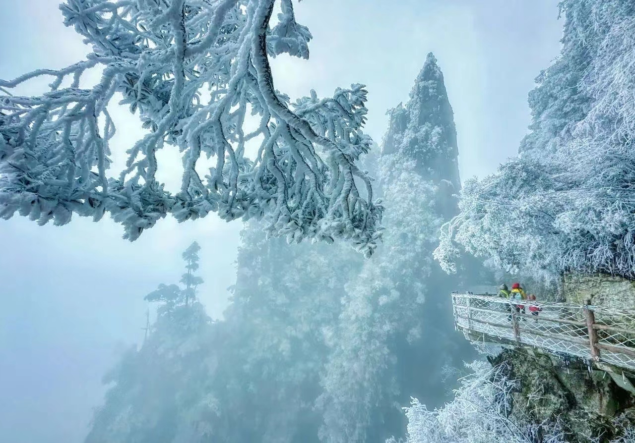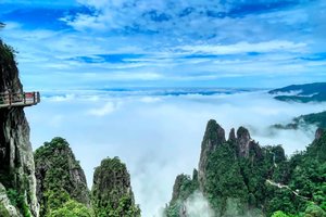 10:30 深度游览五指峰景区,漫步悬空栈道,南中国最长的悬空栈道;总长约8公里,海拔1400米至1600米,两层栈道,全程无障碍观光环线,登高山、临绝壁如履平地,尽享“非人”奇遇。