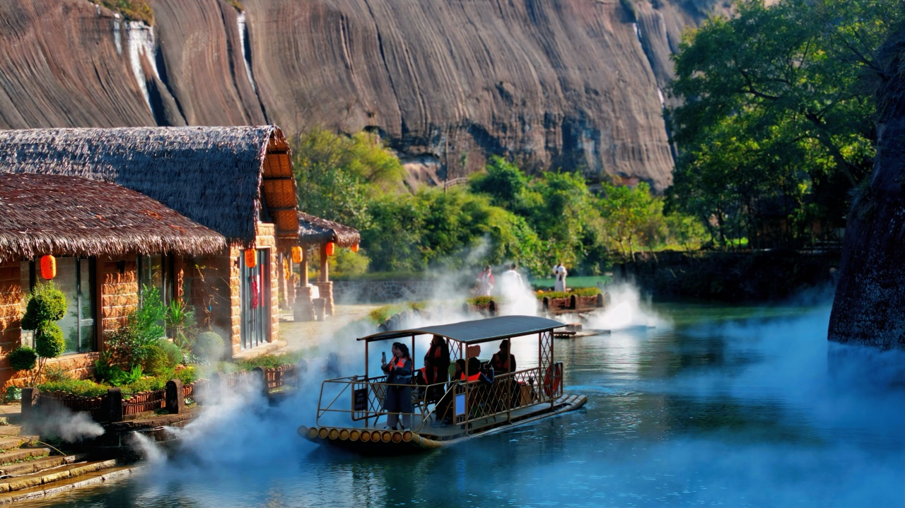 9:30到达飞天山风景区,游九龙水寨竹筏游,从大面洲码头出发,行至九龙水寨,水寨中浏览后,看鲤鱼戏水和千年悬棺,如想在九龙水寨停靠片刻,可与竹筏师傅沟通。竹筏游船的路线是围绕着光滑壮丽的岩石山,为游客展现了一幅精致的水上丹霞地貌画卷,乘坐在竹筏上,在碧波荡漾的江面上漫游,仿佛置身仙境,可以尽情享受碧水丹霞之美!