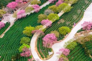 10万株樱花盛开在5万亩的茶园内茶绿樱红,美得震撼!