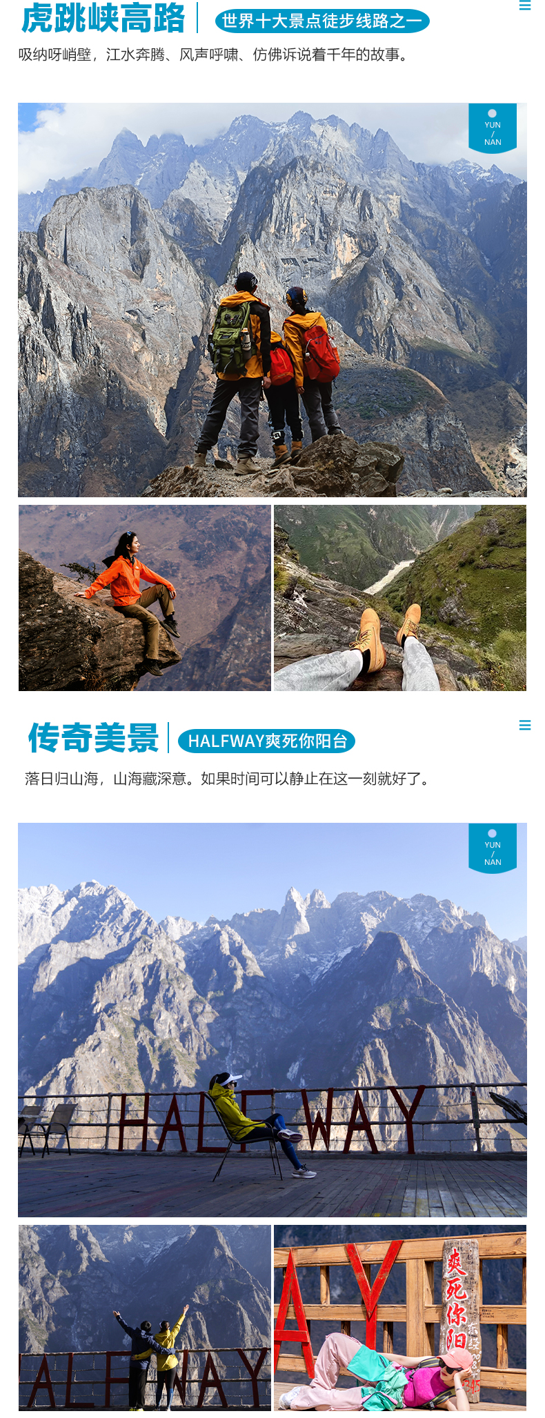 特别说明:雨崩结束后,虎跳峡会换其他师傅服务,可能也会存在当地拼车到景区的情况,敬请理解!