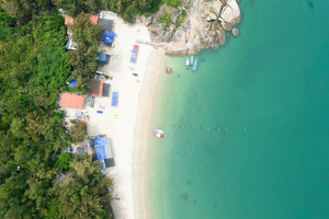 一个靠近外海未被开发的海湾,宛如奇石公园,海水清澈透明,海沙洁白细腻。