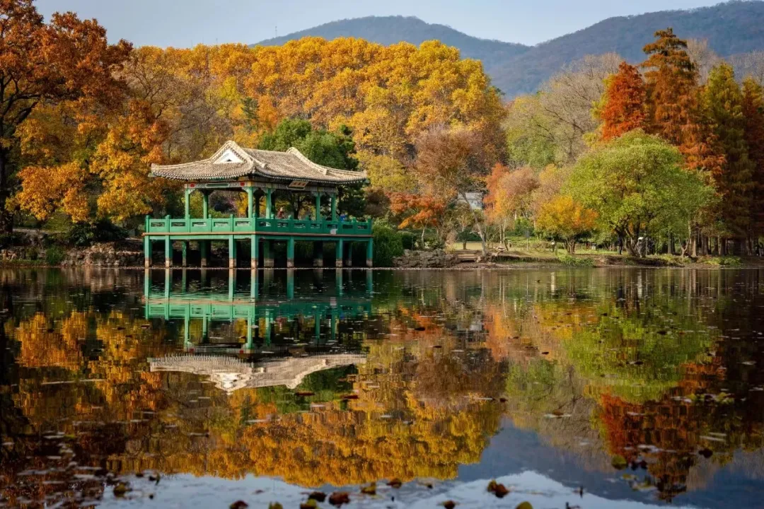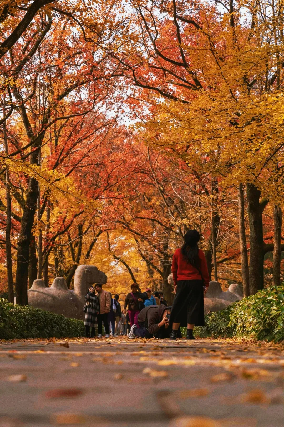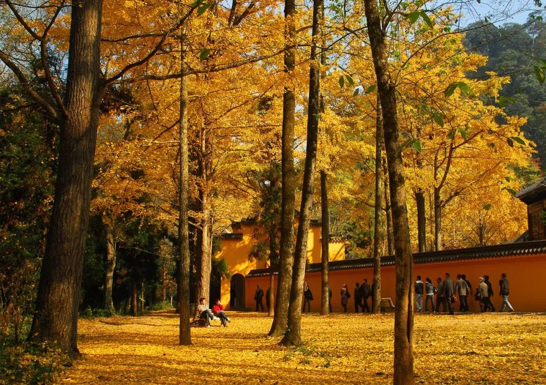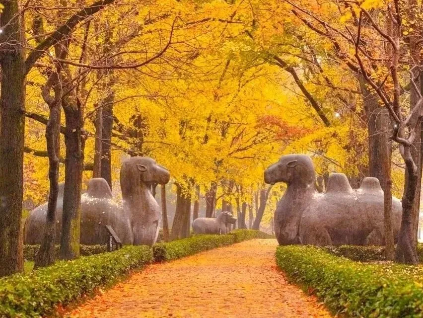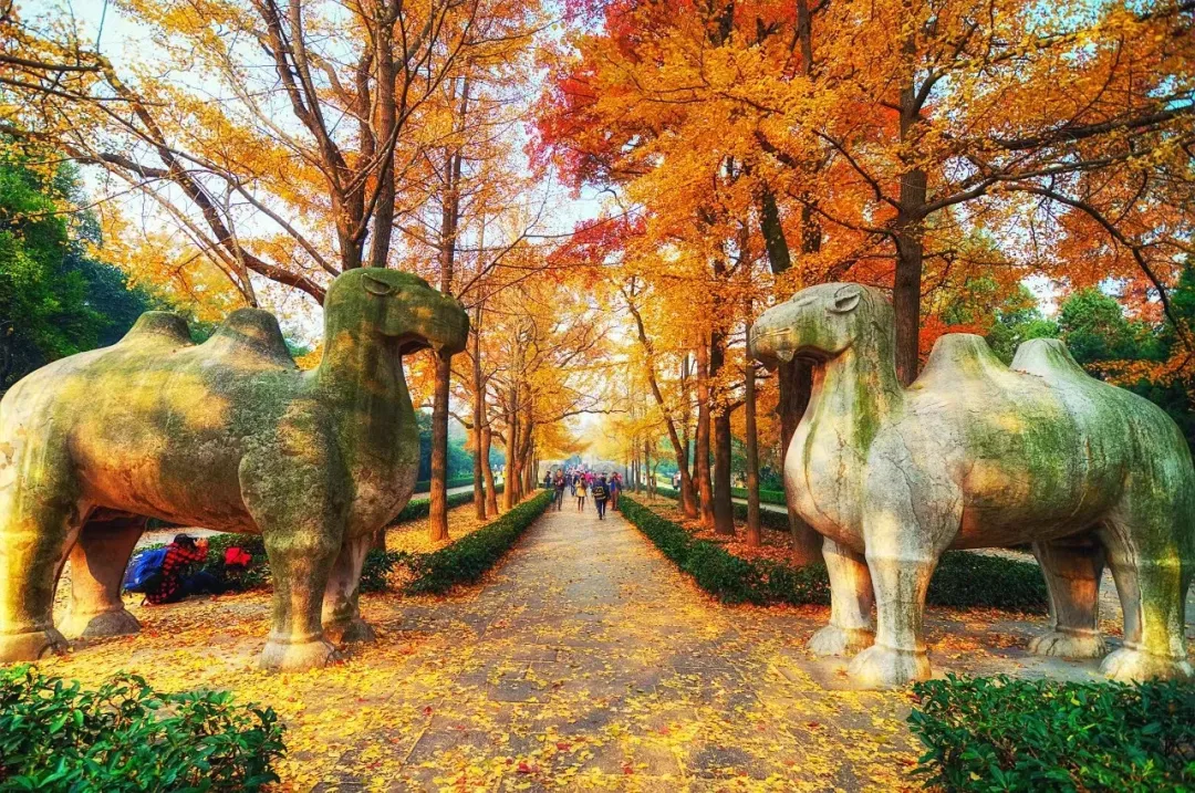 早餐后退房,出发前往南京(车程约4.5小时),途中在服务区自行安排解决午餐。到达【明孝陵】, 前往燕雀湖,秋天落羽杉倒映在水光潋滟的溪水里,浅红、深红、金红,各种颜色相互交织,美得直击人心,如仙境般梦幻。然后去被称为“南京秋天最美的600米”的石象路,路两旁排列着6种12对石兽,这些石兽历经600多年的风吹雨打,依然纹路清晰,栩栩如生。一路前行,穿过翁仲路,便到了文武方门。红墙黄瓦,在秋日暖阳的照耀下,给人一种岁月静好的感觉。再往前走,就到了碑殿。碑殿是明孝陵享殿的旧址,现在只剩下 3座石碑,殿内的驮碑龟趺在秋天显得别有一番韵味。出了碑殿,继续往前走,就到内红门,红墙银杏实在出片,最后抵达宝顶。站在宝顶之上,俯瞰整个陵园,秋天的美景尽收眼底。然后前往七号门,乘坐景交车前往【灵谷寺】,寺庙与银杏、枫树交织出的秋日景色,有着张扬的色彩,也有着难得的寂静,一阵秋风吹过,叶子飘飘洒洒地落在地上,就像是给灵谷寺铺上了一层景色地毯。这时,走在灵谷寺中,偶尔飘落的树叶、窸窸窣窣的落叶声,让人不自觉地沉浸在秋色中。爬上灵谷塔,您可看到层林尽染,秋意铺面。