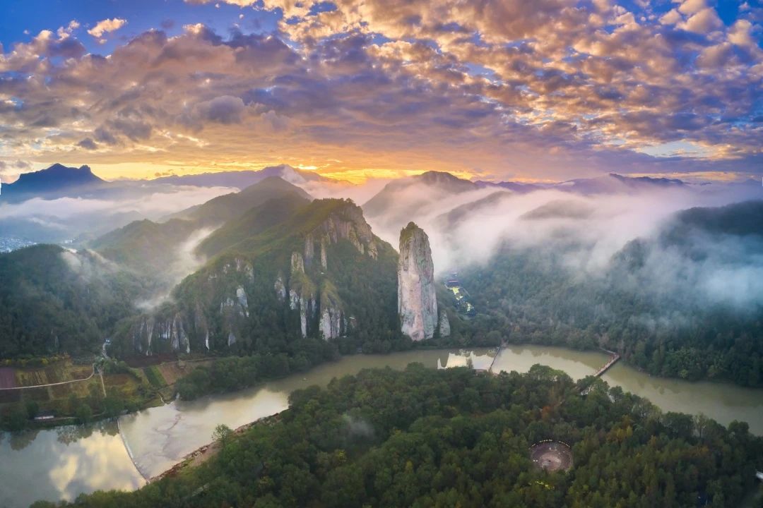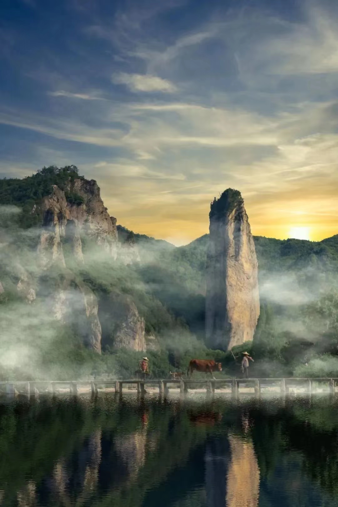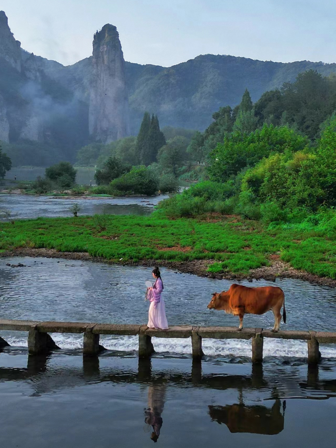 早起的小伙伴可与领队一起前往朱潭山拍晨雾,如果幸运,还能碰到农夫拉牛在桥上经过的画面。早起不了的小伙伴可继续睡觉。吃完早餐集合前前往【鼎湖峰】,鼎湖峰景点素有“仙都佳绝处,必定在鼎湖”之称。这里峰岩奇绝、山水飘逸,有全球罕见的火山喷发通道遗迹【凌虚洞】和“天下第一祠”【黄帝祠宇】。鼎湖峰,又名独峰、丹峰,俗称石笋。东峙步虚山,西临练溪水,底部面积2468平米,顶部面积710平米,高170.8米,拔地参天, 凸现阳刚之气,为一亿六千万年前火山喷溢堆积的流纹岩台地,经地质外力作用而形成柱峰奇观,被誉为“天下第一峰”。相传黄帝在峰巅置鼎炼丹,后驭龙升天。峰顶松柏间,丹鼎凹陷形成小湖,泉水清澈,四时不竭,故名鼎湖,峰亦因之。中午回到民宿附近AA午餐,餐后休息。指定时间集合前往【倪翁洞】,倪翁洞景点是隐居圣地,因倪翁隐居而得名。明朝刑部尚书李鋕(号旭山)和御史樊献科(号斗山),也曾先后隐居于此。如此一个幽静而雅致的天然石室,自古以来吸引了许多文人雅士,留下众多珍贵的摩崖题刻。仙都摩崖题刻是国家重点文物保护单位,也是浙江省最早被列入“国保”的摩崖题刻群,共125处,占丽水市古代摩崖题刻遗存的1/3,占浙江省古代摩崖题刻遗存的1/9。仙都摩崖题刻自唐朝开始直至当代,真草隶篆行书体兼具,诗词歌赋记文体齐备,且不乏名家力作和精品佳作,这在中国书法史上是不多见的。前往【岩宕书房】,岩宕书房已经成为了游客们纷纷涌入的热门打卡点。这个深坑书房完全依靠天窗采光,四周峭壁的环绕隔绝了外界的暑热,使得书房内随时都是清凉宜人的环境。而这个深坑的落差非常大,据测量,可能有数十米高,让站在底部的人们感到渺小而温馨。