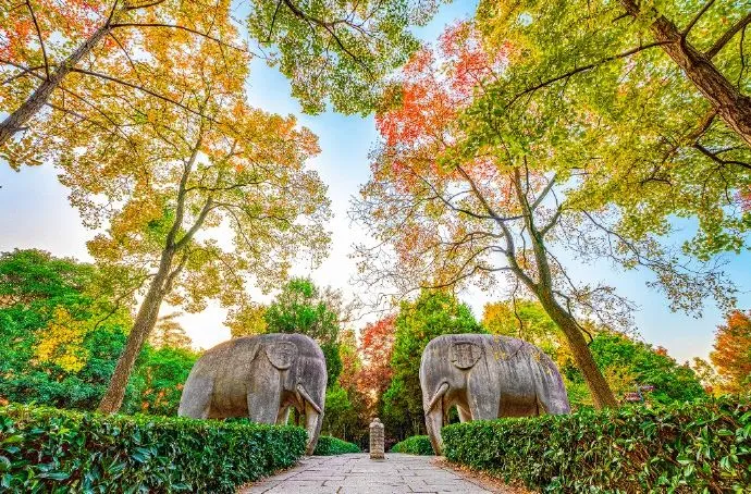 明孝陵神道上的景色仿佛油画般色彩斑斓