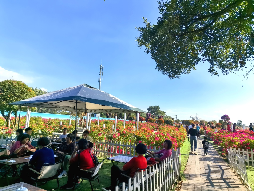 13:30 乘车前往【中山横栏西江花海】,车程约40分钟,正好午休会;长达3公里的花海,有许多品种各色造型的花海,五彩斑斓,美不胜收,喜欢拍照的伙伴们手机咔咔咔起来;置身花海,只需一层太阳滤镜就能秒出片~还可以从花海一直沿着十里西江河畔漫步,绿化很好,空气清新,在阳光下赏花散步吹河风太惬意啦(游玩约2小时,之后集合回家咯)
