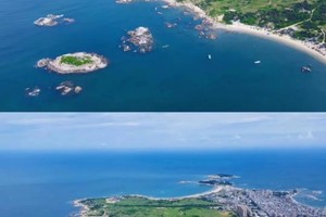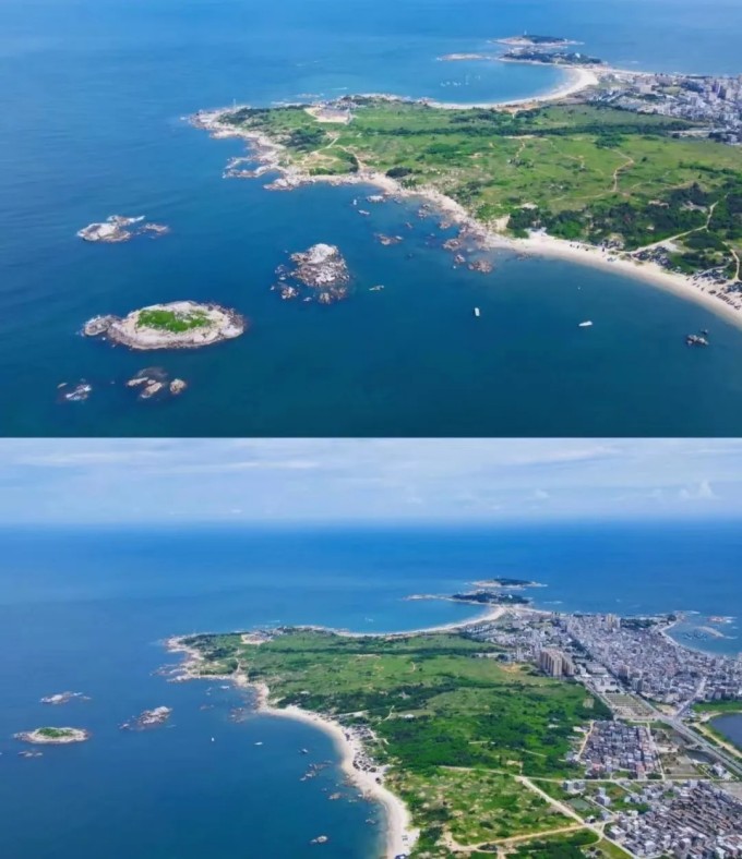 最为奇特的是岛东与岛西海面的风光迥然不同,