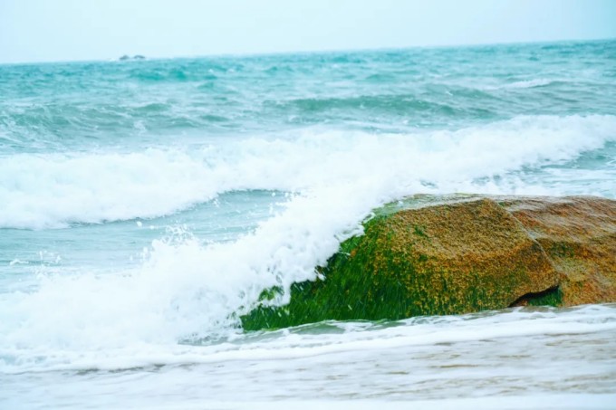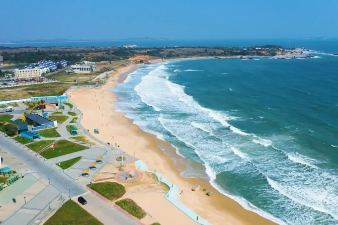 东西两侧形似月牙的海湾,长年一边波涛汹涌,一边风平浪静,此起彼伏,蔚为奇观,可谓“中国观浪第一湾”。其沙滩金黄细腻,海水蔚蓝透明,礁岩千姿百态,阳光、蓝天、白云相得益彰,帆影、翔鸥、彩霞交相辉映,极富魅力。
