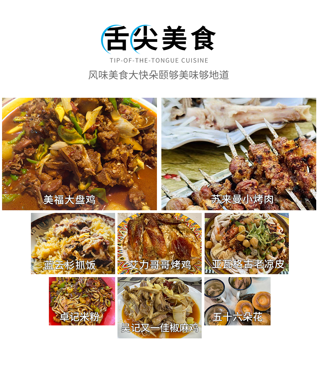 新疆的口味普遍偏酸、辣、甜,多数菜肴中都有洋葱、辣椒和西红柿,游客中如有忌口或有特殊要求者,请提前告知陪同,将会得到即使解决。游客在享用风味是,拉条子(拉面)吃完可以免费添加拉面,但添菜需另付菜金。