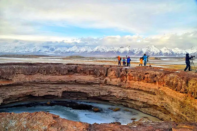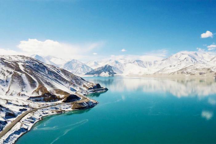 之后抵达白沙湖,白沙湖是慕士塔格峰冰川雪水流经布伦口形成的湖泊,因湖面西侧的山上有白沙而得名。冬日的白沙湖呈现出别样美景。未结冰的湖面在微风轻拂后,泛起涟漪,而已经结冰的湖面像是将白云拓印在了冰面,构成了一幅美丽的画卷。首先我们抵达白沙湖北岸,这里人少景色开阔,有属于你的专属机位。之后抵达白沙湖南岸,继续创作。