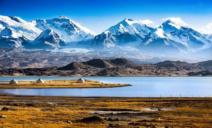 之后前往今天游览的重点【卡拉库里湖】,卡拉库里湖位于冰山之父——慕士塔格峰的山脚下,距离喀什191公里。“卡拉库里”意为“黑海”,海拔3600米,是一座高山冰蚀冰碛湖。水面映衬着巍峨又神秘的慕士塔格峰,白雪皑皑,山水同色,景色十分迷人。是世界上少有的高原湖泊。湖的四周有冰峰雪岭环抱,特别是周围的公格尔、公格尔九别峰和慕士塔格峰更为这个湖增添了神奇而美丽的色彩。在风平浪静的日子里,皑皑银峰、绿色草原和湖边畜群倒映在湖中,异常优美。
