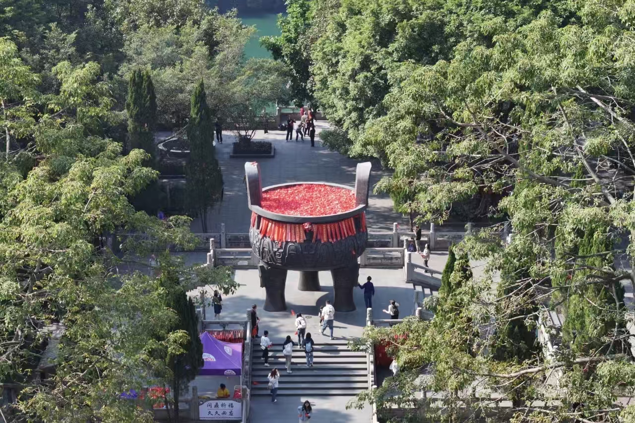 漫步其中,便能感受 “天然大氧吧” 的治愈力,庆云环翠、龙潭飞瀑、双虹飞堑等景点更添登山乐趣,宝鼎园内的 “九龙宝鼎” 作为上海大世界基尼斯之最,湖山鼎势相得益彰,值得打卡。