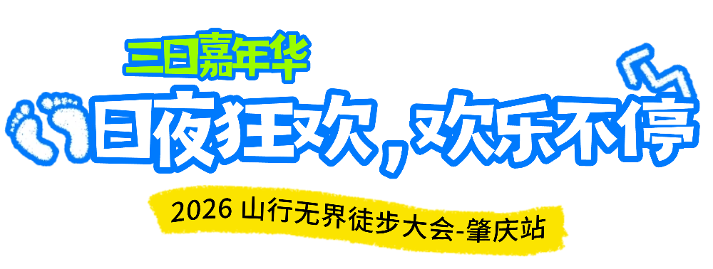 本次徒步大会隶属于 “2026端州区首届江湖户外运动活动季暨第六届活力圈户外运动生活节”,三天时间里,除了徒步,更有超燃嘉年华活动嗨翻全场,打造 “日玩夜嗨” 的沉浸式体验: