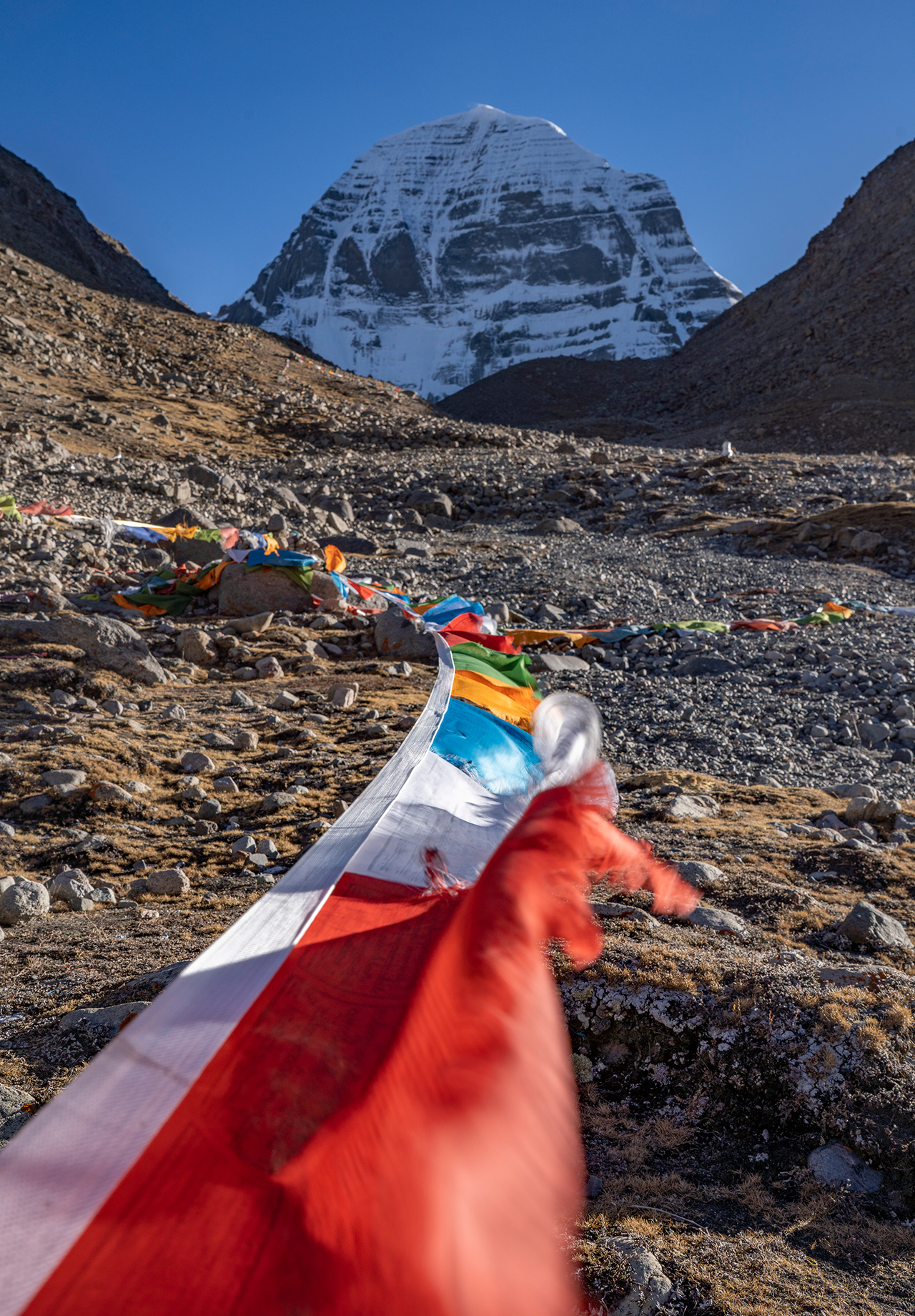 早餐后出发,先缓缓徒步3小时左右到达经幡广场(也可以乘景区车直接到经幡广场),这里已经可以看见神山了。由此下坡,小道折向北进入拉曲峡谷,沿着河的东岸,来到今天的下榻地止热寺牧民帐篷,止热寺面对神山冈仁波齐峰,真正可以躺在床上就能看冈仁波齐!今天住宿的地方海拔较高(5100M),可能部分队友会有头痛,睡不着等轻微高原反应,请在出发前自备点红景天和高原康哦。不转山的队员也可跟着大部队一同出发,徒步3小时到达经幡广场,最近距离欣赏岗仁波齐神山,自由拍摄后,原路返回神山乡塔钦,等待次日与大部队集结。山上的餐食基本上以方便面为主,要转山的队友也可以自备一些干粮路上补充热量。