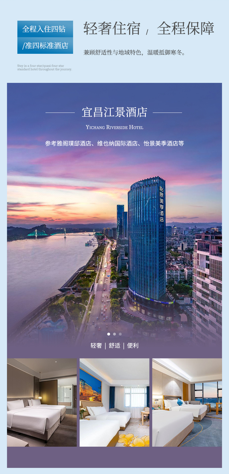 住宿:宜昌准四星酒店,参考宜昌维也纳国际酒店、雅阁璞邸酒店等;
