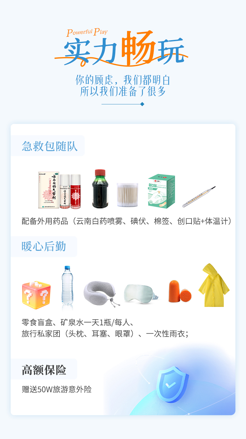 6.保 险:赠送100万保额旅行社责任险+50万最高额度旅游意外险;