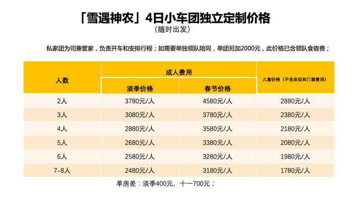 2.由于此产品游览区域属于神农架林区,经济发展缓慢,物资匮乏,旅游资源条件有限,无法与一二线城市旅游资源比较,如遇相关问题敬请谅解