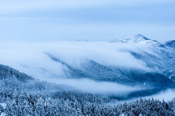 当雪花纷纷扬扬地飘落,神农顶被装扮成了一个银装素裹的世界。连绵的山峦被白雪覆盖,如同一条洁白的巨龙蜿蜒盘旋。古老的冷杉林在冰雪的包裹下,愈发挺拔苍劲,枝头挂满了晶莹剔透的冰挂,仿佛是大自然雕琢的艺术品。
