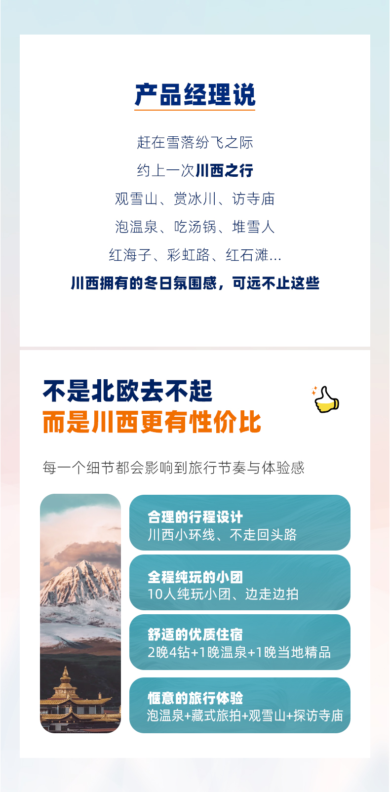 冬季限定,共16期,每周五成都集合,周六出发,次周二结束,节假日略有调整。