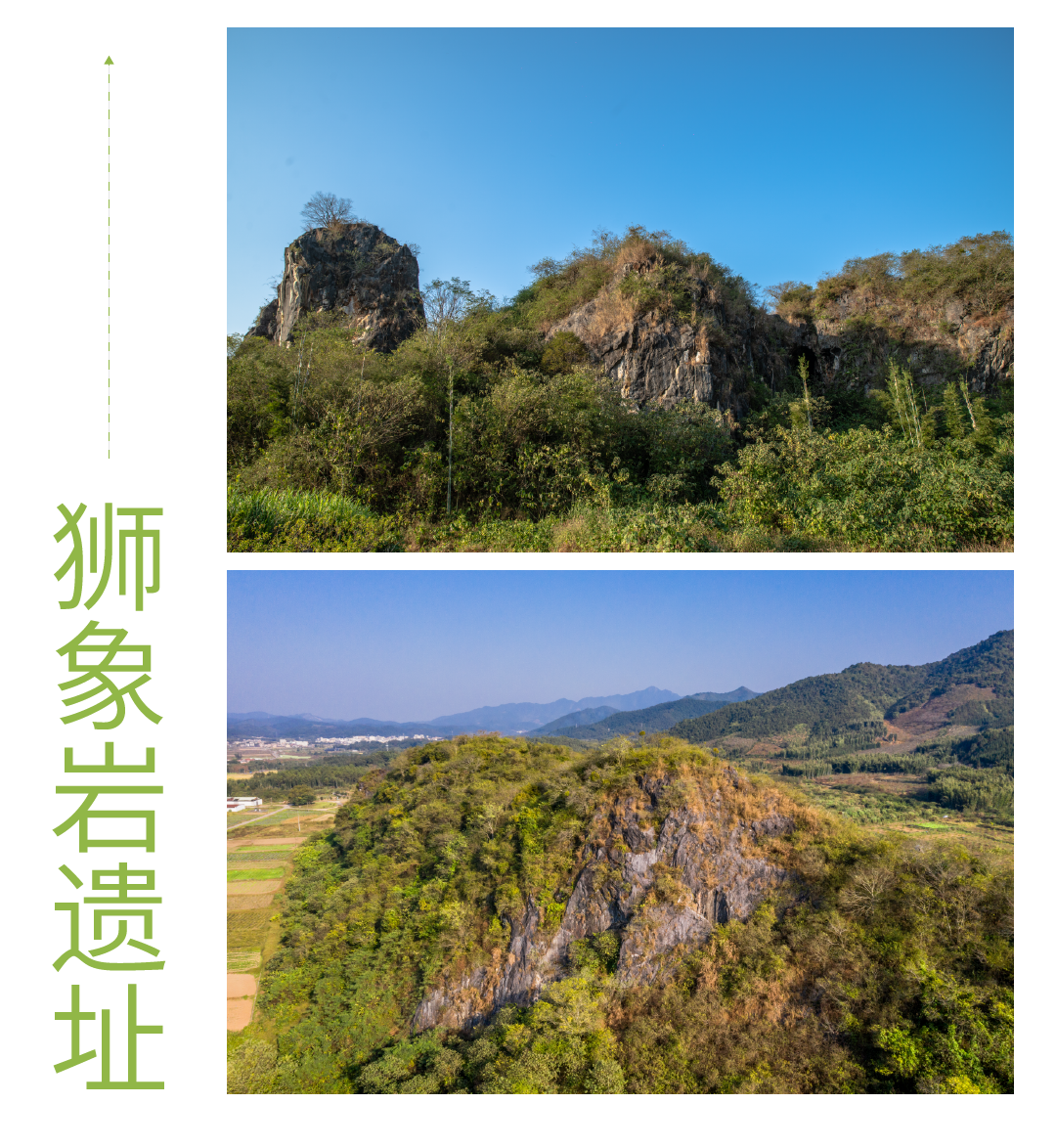 14:30狮象岩遗址位于吕田镇狮象村狮象岩山一带,分别散落在白庙沟、狮象岩、社迳坑等地,是新石器晚期文化遗址