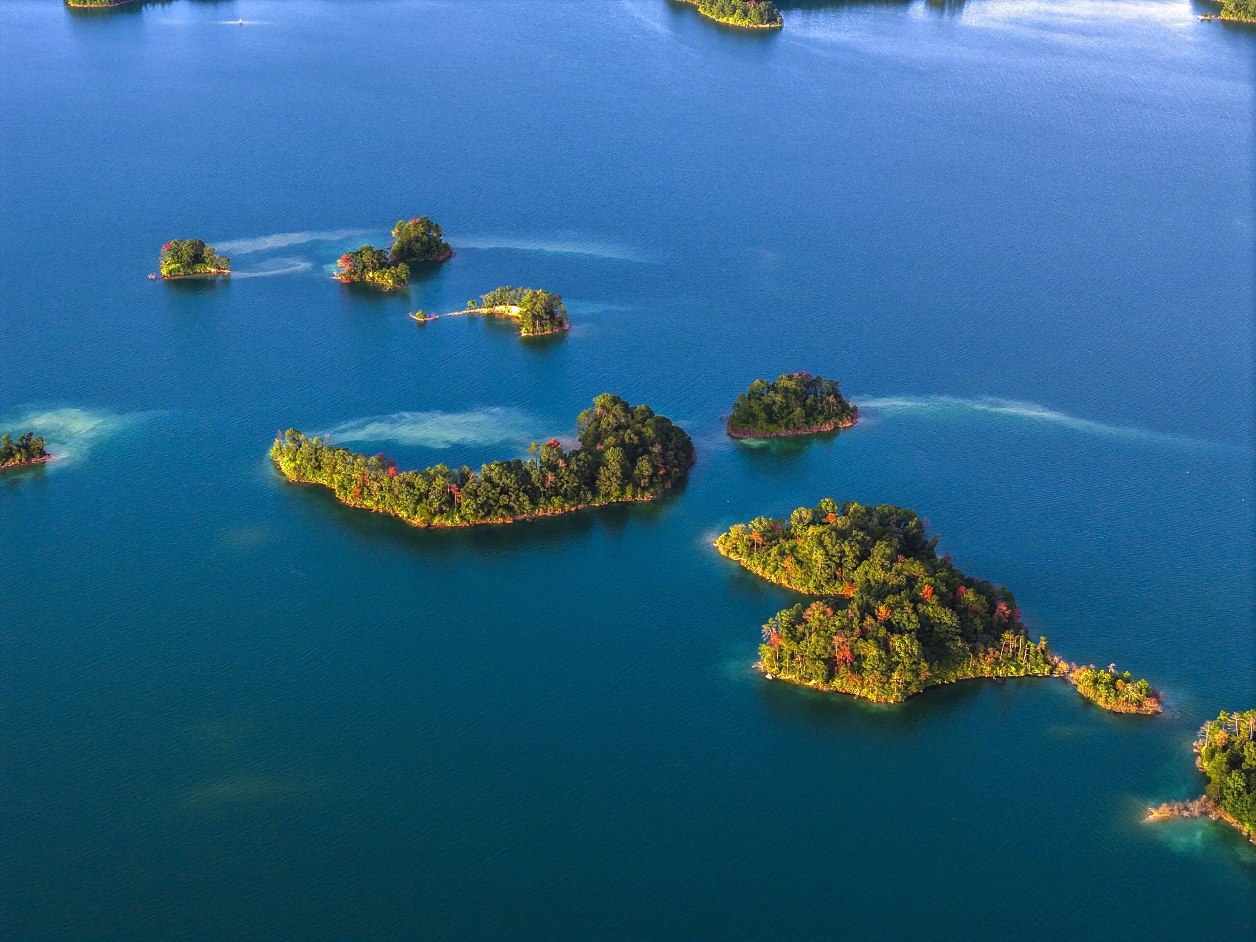 三百八十多个岛屿如翡翠散落湖中,近处的苍翠欲滴,渐远的化作青黛色剪影,最远的只剩水墨般的淡痕。游船划开金色水路,岛与岛之间形成光的回廊。