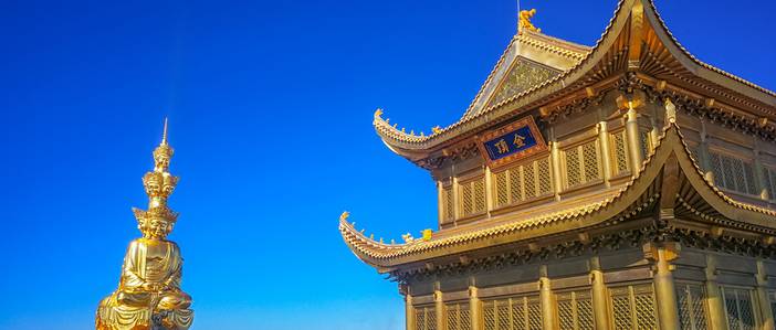 早餐后乘观光车(自理)至雷洞坪,步行半小时(1.5km)至接引殿,乘坐索道(上65/人,下55/人,自理)登至峨眉主峰—金顶(海拔3077)在最高的观景平台观云海、佛光、金银铜殿、十方普贤等自然奇观和佛教奇观奇观等,在世界最大的朝拜中心祈福许愿,