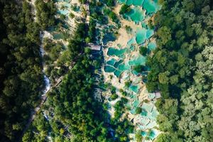 黄龙以其雄、峻、奇、野风景特色,享有“世界奇观”、“人间瑶池”的美誉。迎宾彩池、飞瀑流辉、金沙铺底地、争艳池、明镜倒影、梭罗映彩、黄龙寺、五彩池等,彩池规模不同,形状各异,有些池水映出各种不同的色彩,五光十色,争奇斗妍;浅滩上水流涌动,阳光照射,波光粼粼,晶莹透亮;水下铺垫着一层细细的浅黄色苔藓,涉足滩流,倍感柔软清凉,此时此地,恍若进入瑶池仙境。