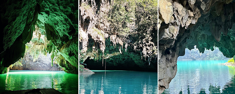 划船穿过三个天然溶洞