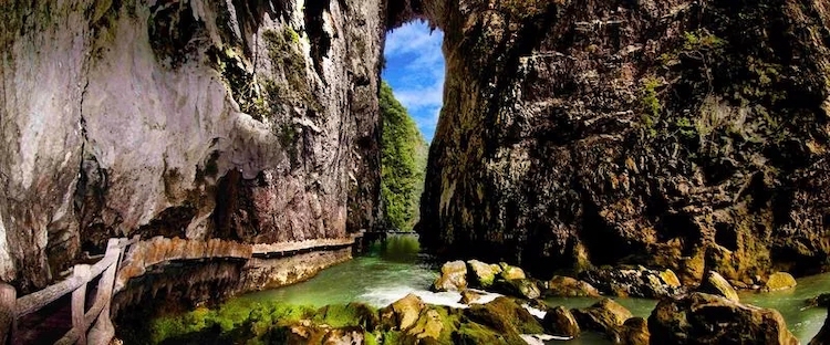 乘船穿行水上天坑奇境,穿过天坑,探秘玻璃海,体验“山中有海,海上有门”的奇幻之旅。