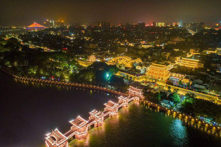 晚上,在韩江边赏古城夜景,看一场免费的凤城河灯光秀。