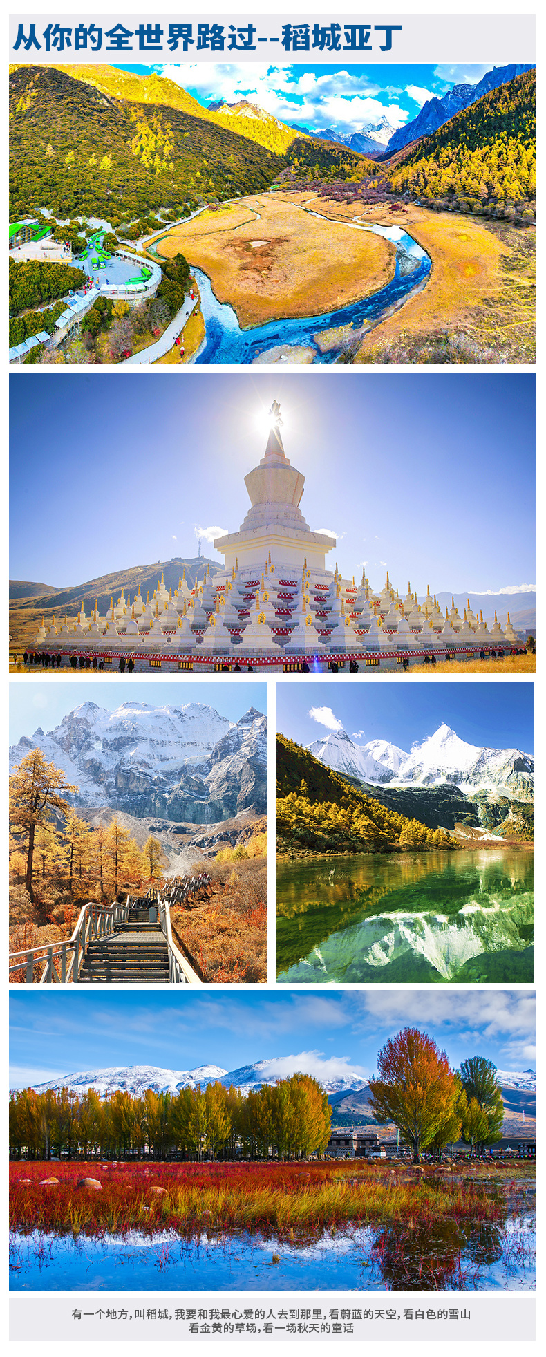 随后沿稻城河观万亩杨树林,翻越海拨4513米的波瓦山,沿途穿越风景如画的高山牧场、壮观的峡谷森林,傍晚抵达香格里拉镇(日瓦镇)入住酒店。今天沿途风景无限美丽,大家尽情耍野,尽情拍照,千万记得电子设备的电池要准备充足哟。