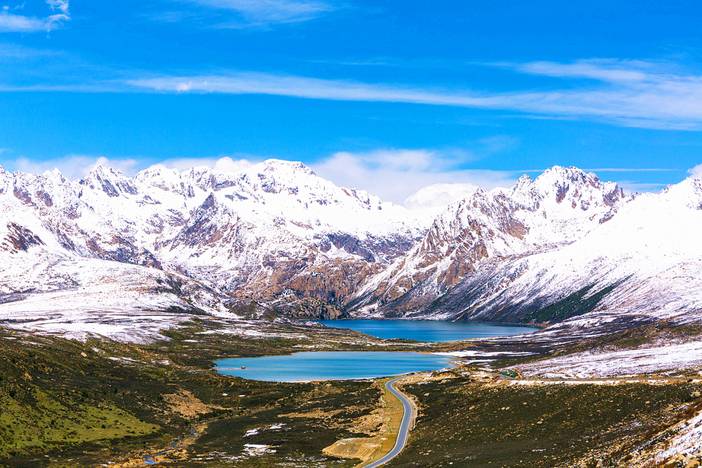早餐后从巴塘出发,沿318国道行驶约一个半小时后抵达姐妹湖。海子山姐妹湖是川藏线上一颗耀眼的明珠,是青藏高原最大的古冰川遗迹。随后翻越海子山4500米到达理塘毛垭坪大草原,《中国地理》杂志曾将她评为中国最美的六大草原之一。我们沿毛垭大草原景观大道后抵达世界高城之雪域圣地【理塘】,这里也是丁真的故乡,雪山、冰川、草原、牧场、藏房,犹如现实的乌托邦。