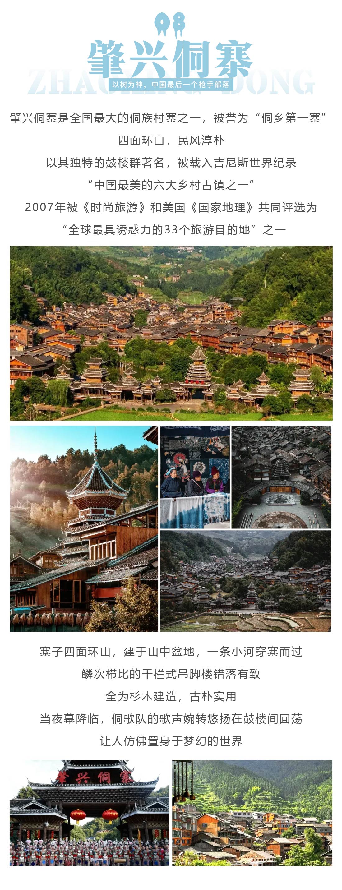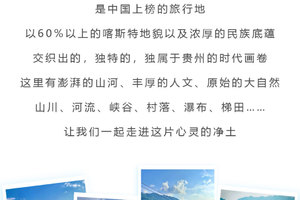万峰湖 | 峰林布依 | 马岭河峡谷 | 黄果树瀑布 | 荔波小七孔 | 岜沙苗寨 | 肇兴侗寨 | 堂安梯田 | 镇远古城 | 西江千户苗寨