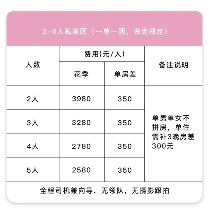 【用车说明】根据参团人数安排车型,保证一人一座。
