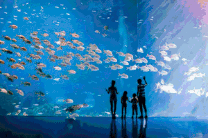巨大的LED天幕,海洋动物时而在你的头顶游过