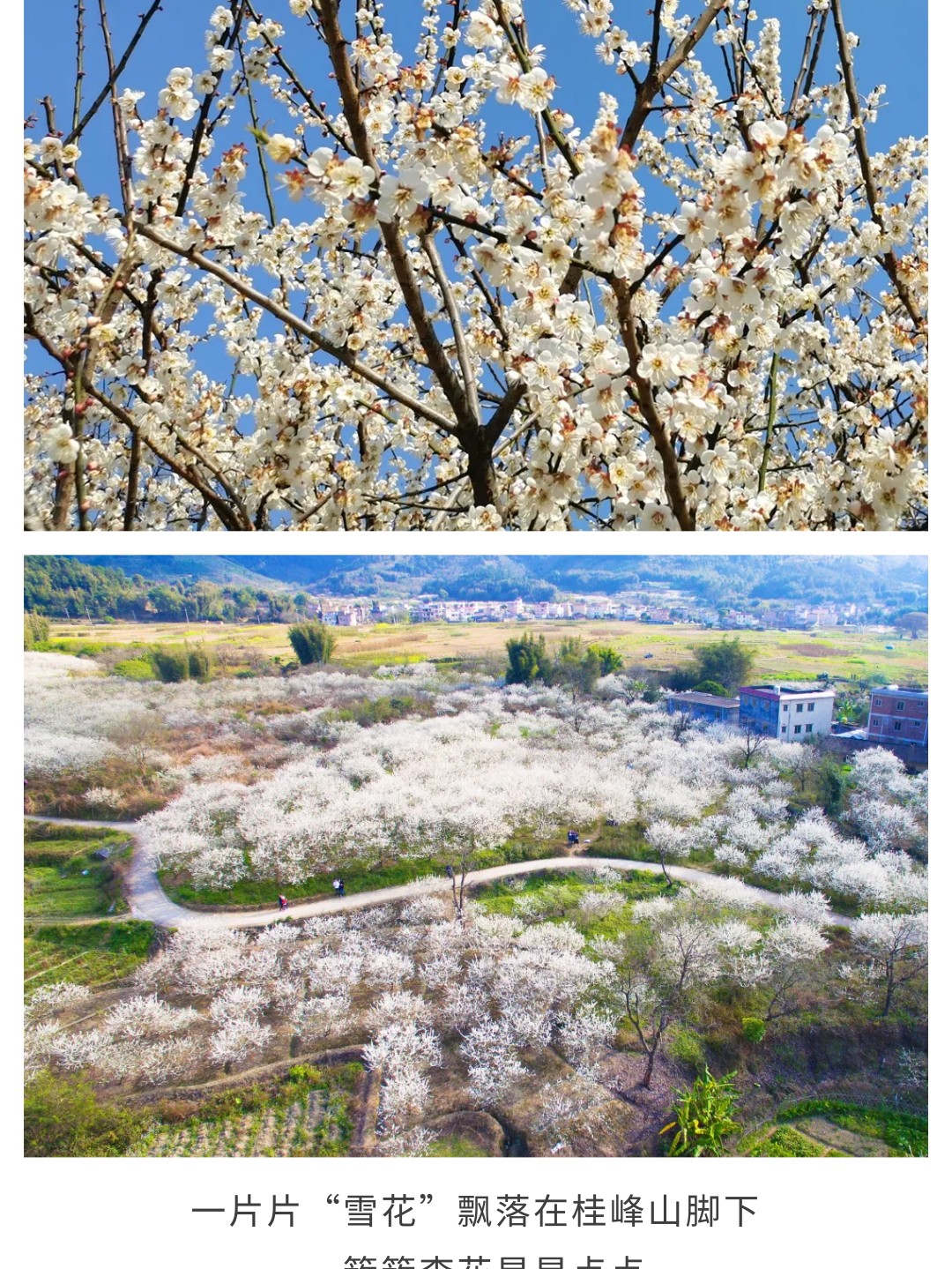 10:20 左右到达【桂峰村】,赏桂峰山脚下的满地雪花。一边漫步,一边拍照,享受悠然村落的恬静生活。在这里,享受远离城市匆忙的闲暇一刻。中午时分,挑一间当地特色的农家菜,约上小伙伴或邀请新朋友,共进美味午餐