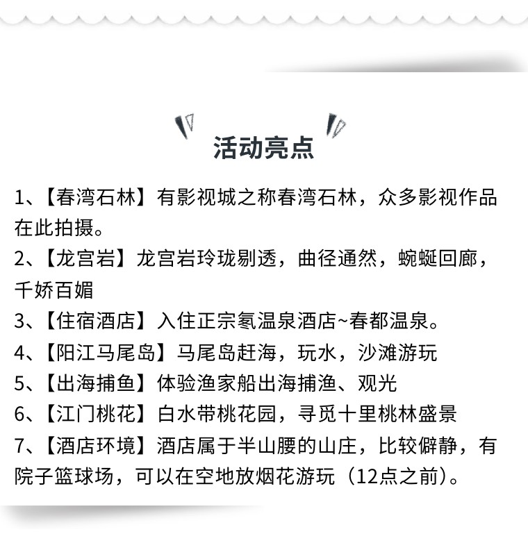 *所有周边游活动我们会在出发前1天下午通过短信/微信向您发送出行通知,当次活动临时群于活动当天车上统一建立。